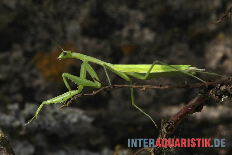 Das Terrarium sollte mit Kletterästen, Blättern und anderen Versteckmöglichkeiten ausgestattet sein, um den natürlichen Lebensraum der Gottesanbeterin nachzubilden. Eine Schicht Substrat als Bodengrund ist ebenfalls empfehlenswert.