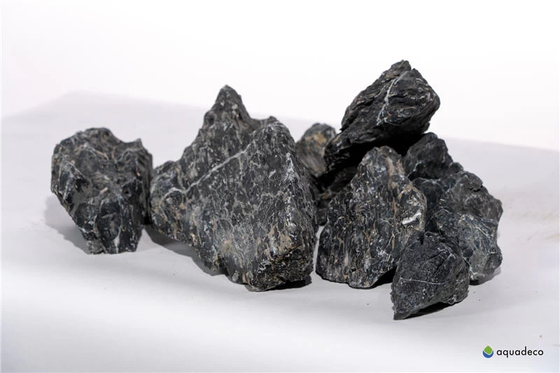 Tolles, dunkles Dekorationsgestein im praktischen Set für Süsswasser-Aquarien und Terrarien. Ideal für Aquascaping geeignet! Das Set enthält genügend Steine um ein 80 cm Becken perfekt zu dekorieren, die Anzahl der Steine kann dabei je nach Größe der Einzelstücke variieren.