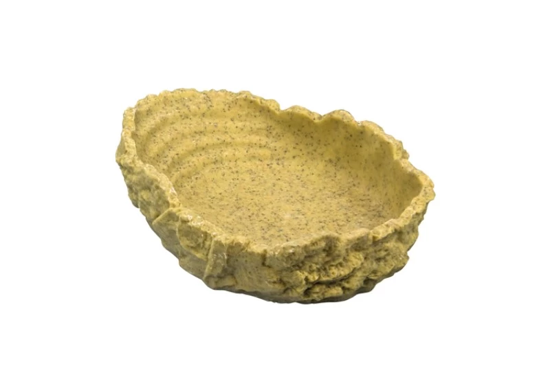 Diese praktische Trink- oder Badeschale für Terrarien ist in Felsoptik gearbeitet und hat ein Fassungsvermögen von ca. 2000 ml. Eingearbeitete Stufen ermöglichen es den Tieren die Schale gefahrlos wieder zu verlassen und verhindern ertrinken. Die Schale sollte immer leicht im Boden eingegraben werden um den Terrarientieren einen leichten Einstieg zu bieten.