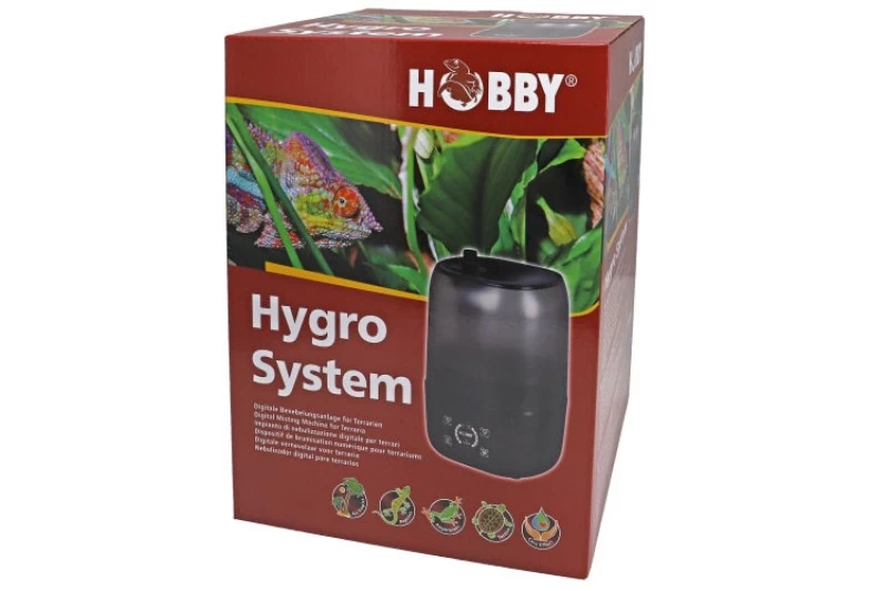 Das Hygro System ist eine digitale und zuverlässige Hochleistungs-Benebelungsanlage für alle Arten und Größen von Terrarien, besonders für Regenwaldterrarien empfohlen. Die Anlage sorgt für eine schnelle Erhöhung der Luftfeuchtigkeit durch feinste Vernebelung mittels modernster Ultraschalltechnik. Das besonders große Wasserreservoir mit 4,0 Litern Inhalt reicht auch für die Luftbefeuchtung größerer Terrarien, Volieren oder kleineren Gewächshäusern. Schaltet sich automatisch bei erschöpftem Wasservorrat ab damit kein Schaden entsteht.