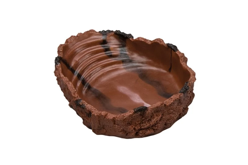 Diese praktische Trink- oder Badeschale für Terrarien ist in Felsoptik gearbeitet und hat ein Fassungsvermögen von ca. 550 ml. Eingearbeitete Stufen ermöglichen es den Tieren die Schale gefahrlos wieder zu verlassen und verhindern ertrinken. Die Schale sollte immer leicht im Boden eingegraben werden um den Terrarientieren einen leichten Einstieg zu bieten.