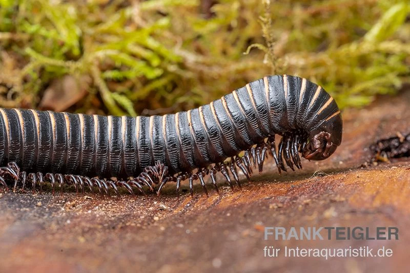 Pink gestreifte Tausendfüßer sind einfach zu füttern. Die Exoten nehmen Holz, Laubstreu, Obst, Gemüse und Pilze an.