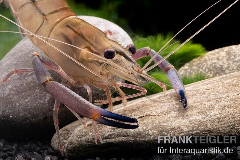 Die Rosenberggarnele, welche die wissenschaftliche Bezeichnung Macrobrachium rosenbergii trägt, kann alternativ auch als Riesenflussgarnele oder Riesenhandgarnele betitelt werden. Bei der gigantischen Süßwassergarnele handelt es sich um eine Großarmgarnele (Macrobrachium) aus den Süßwassergewässern des Indo-Pazifik. Ihr Lebensraum erstreckt sich über die Flüsse und Seen Indonesiens bis in den nord-westlichen Teil Australiens. Mit ihrer stattlichen Größe von bis zu 25 cm (ohne Scheren) ist die Macrobrachium rosenbergii aktuell die größte Großarmgarnele überhaupt. Aber die Rosenberggarnele hat noch viel mehr zu bieten. Zusätzlich zu ihrer enormen Größe besticht die Garnele durch eine optisch ansprechende transparent-bläuliche Grundfärbung. Im Hinblick auf die geschlechterspezifische Unterscheidung lässt sich festhalten, dass die männlichen Tiere größere Scheren haben als die Weibchen. Besagte Scheren können Ausmaße von bis zu 50 cm annehmen.
